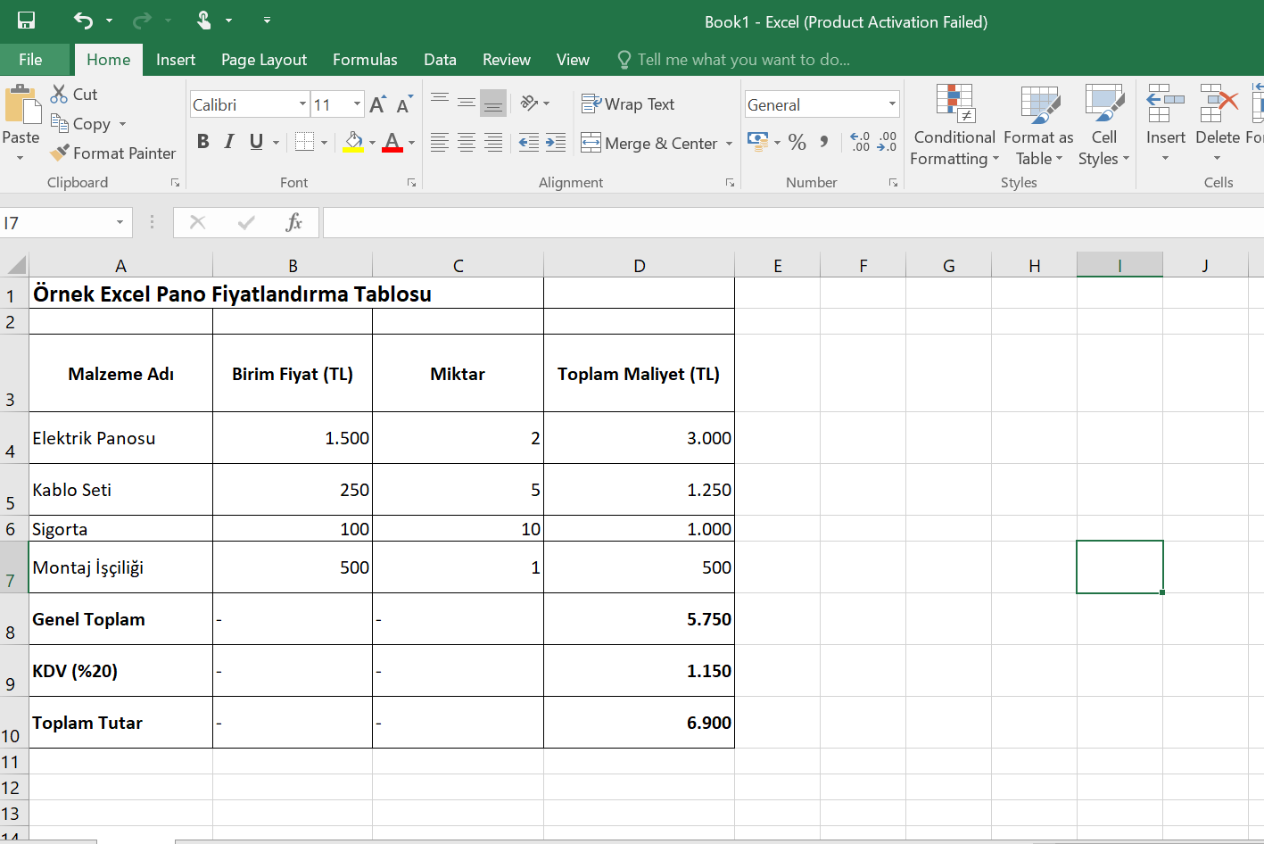 Pano Fiyatlandırma: Excel Kullanarak Maliyet Analizi ve Teklif Hesaplama